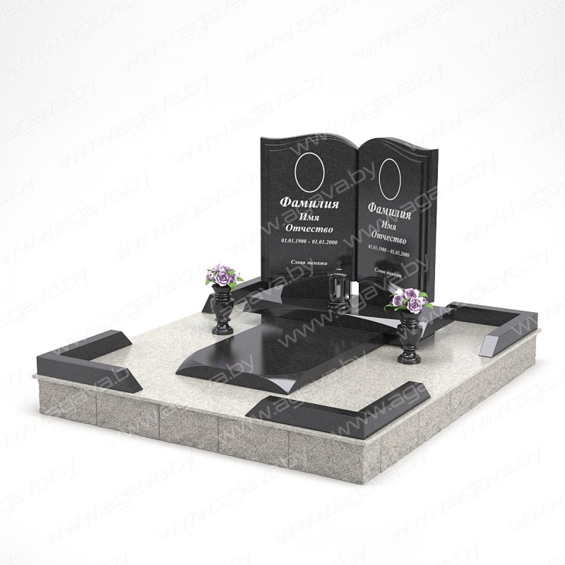- все материалы из гранита: памятник, угловые элементы, серая плитка 4,6 м2, вазы высотой 25 см - 2 шт, лампада - 1 шт;