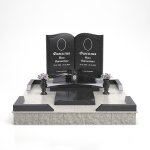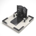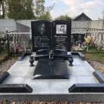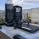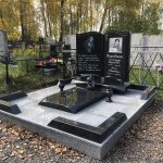 - монтажные работы: фундамент из декоративных блоков серого цвета, армированная стяжка и укладка гранитной плитки, установка памятника и угловых элементов ограды, установка двух ваз и одной лампады.